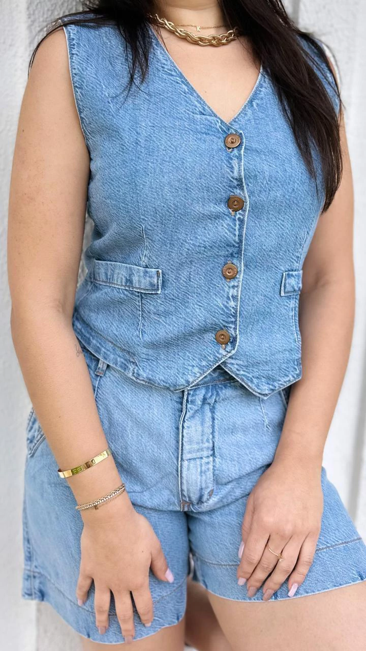 Colete jeans em liocel (tecido mais molinho, uma delicia de maciez)