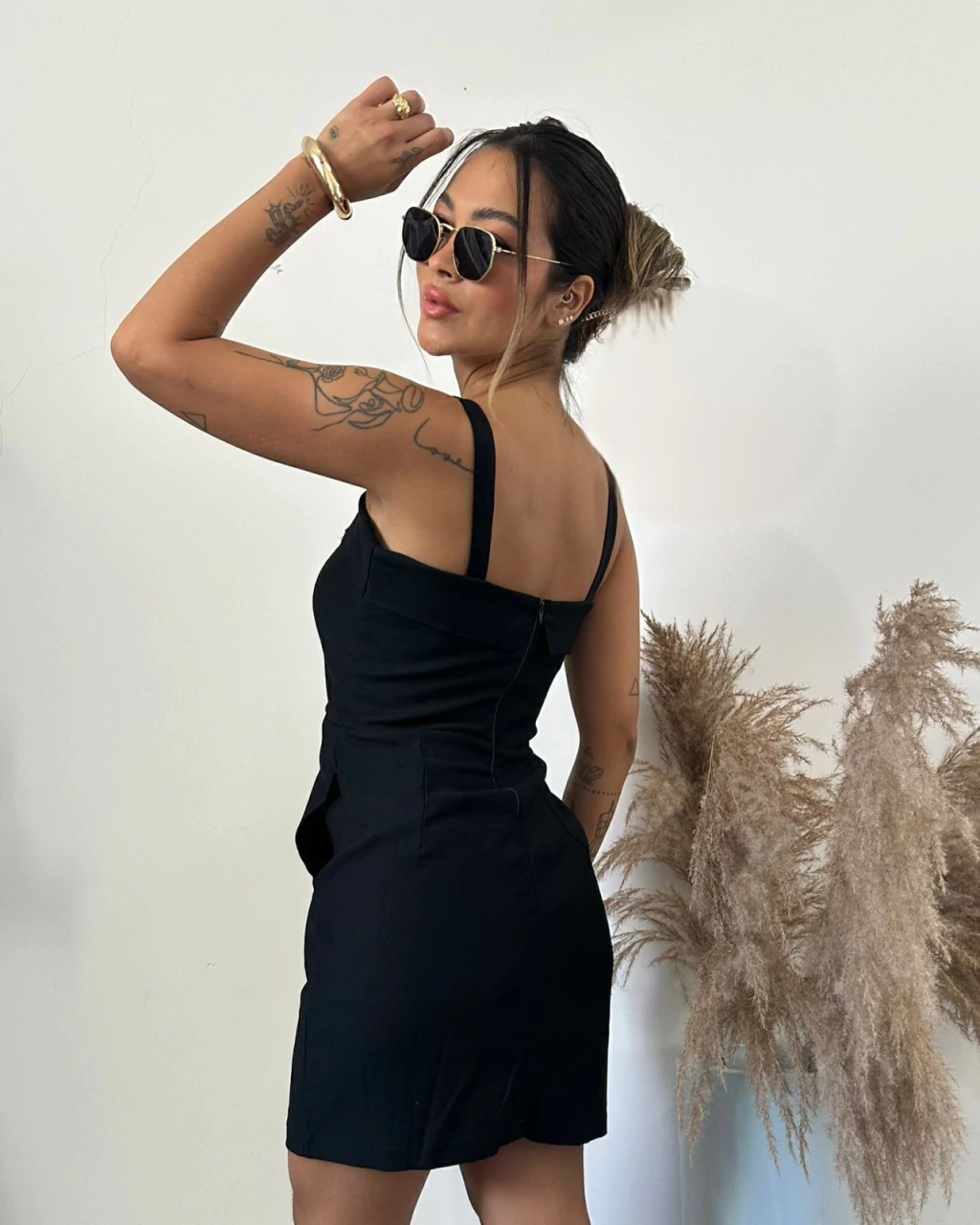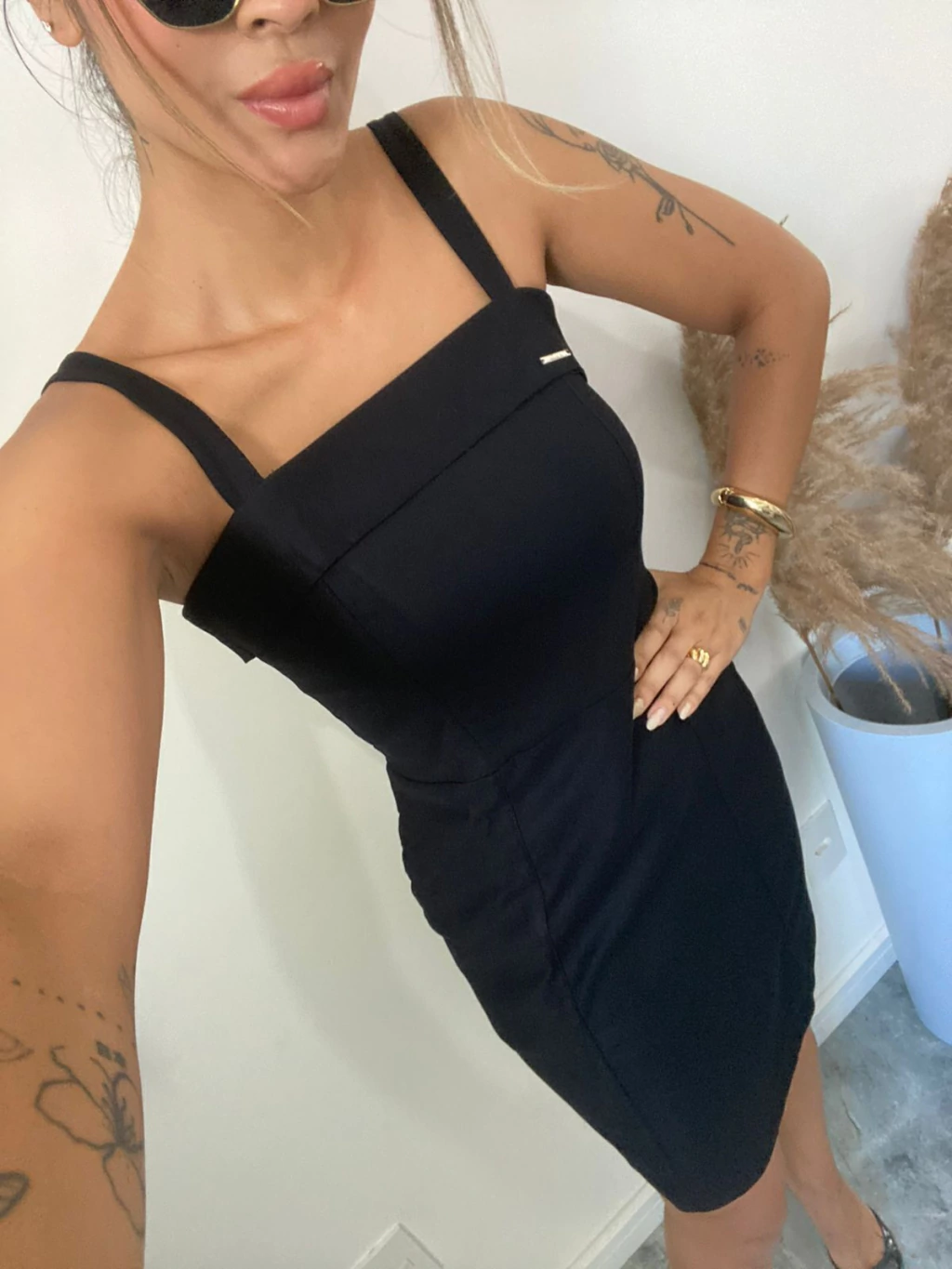 Vestido em tecido frescor com elastano, alças mais largas para usar com sutia, e recortes frontais.